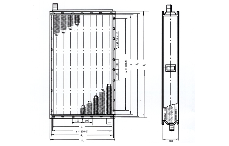 GLⅡ型散熱器為鋼制雙回路(二排)或多回路(四排)的空氣熱交換器,翅片管用φ18×2mm無縫鋼管繞制上10×0.3mm皺折鋼帶而成,呈螺旋狀,其片距為3.2mm,可有各種表面管數,管長,排數組成多種規格。進出水管位于同一側,工作熱源為蒸汽或高溫水,冷源為低溫水或鹽水,可用作空氣加熱器或空氣冷卻器,是一種經濟耐用通用性強的散熱器。